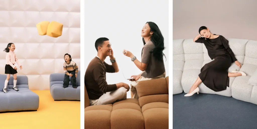 The second chapter, “Style-over-Time”, explores the evolution of design through a dialogue of generations. The mother-daughter duo Louie and Ziyun interpret Tufty-Time 20 through a lens of timeless elegance and modern attitude. Their interpretation mirrors the evolution of an icon: a sofa that remains effortlessly relevant, twenty years on.