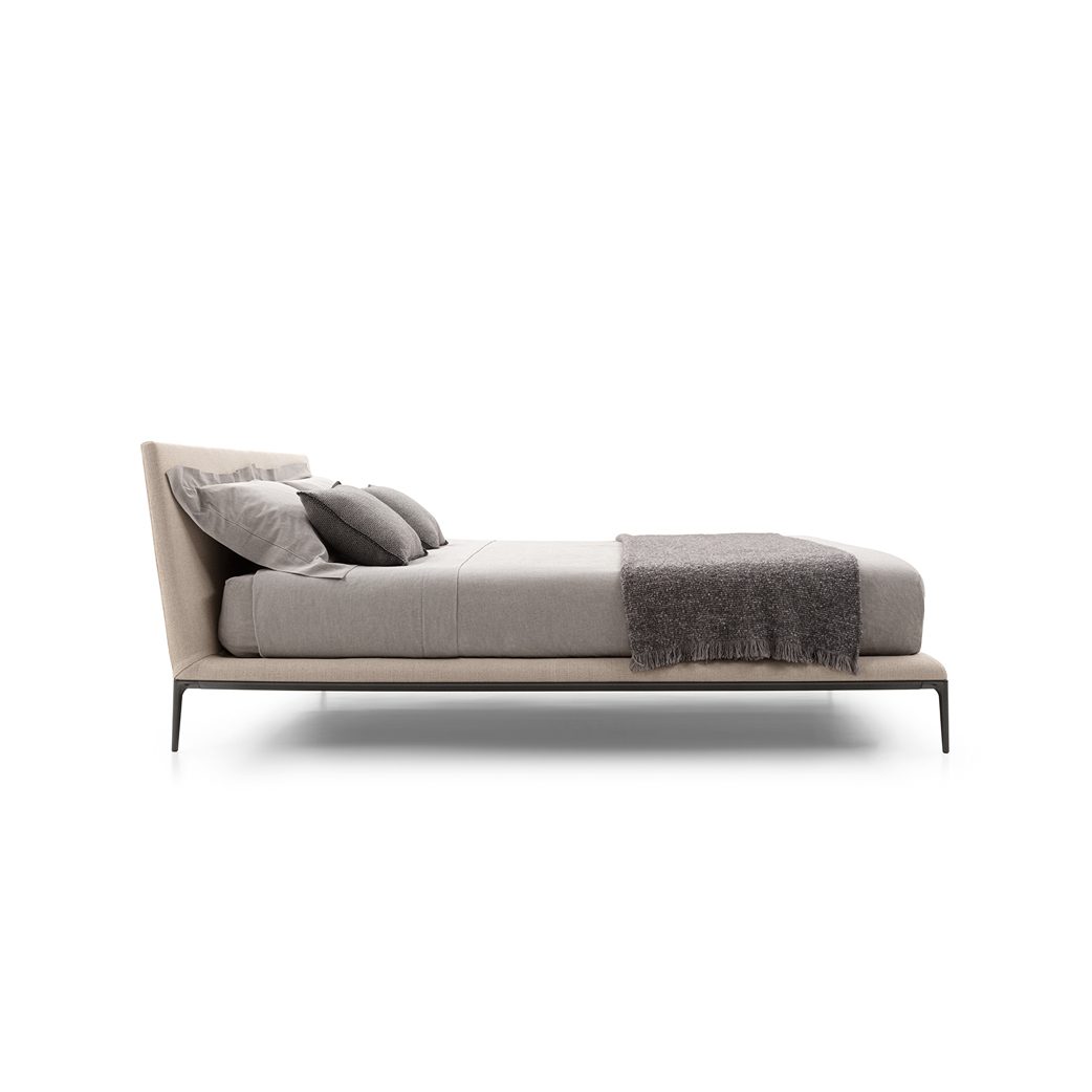 The B&B Atoll collection is continuously being expanded and updated, and has now been extended with the addition of a new bed. This latest piece of furniture reflects the stylistic elements of the B&B Atoll sofas, united as they are by the same exceptional elegance, clean, understated lines, and rigorous proportions, as well as by the die-cast aluminium legs set at each corner, now a staple of contemporary furniture. As with the entire B&B Atoll range, the bed can be covered in leather or fabric.