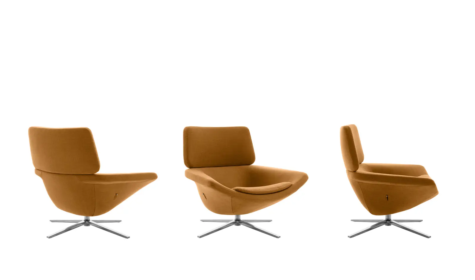 Since 2002, the Metropolitan series by B&B Italia has represented excellence in lounge chair design, evolving over time to offer complementary and innovative solutions. Each new version is created with a clear objective: to expand the seating experience, adapting to contemporary demands for comfort and functionality. Metropolitan Relax is the latest evolution of this iconic family, designed to offer a new level of well-being and adaptability. Thanks to its “tilt” rocking and swivel mechanism, the chair fluidly follows the body’s natural movements, ensuring impeccable support in any position. The newly designed upper backrest and headrest provide optimal support for the head and upper body, enhancing every moment of relaxation. Available with an aluminium frame and upholstered in a wide selection of fabrics and leathers, Metropolitan Relax seamlessly fits into residential interiors, as well as luxury hospitality and executive office spaces.
