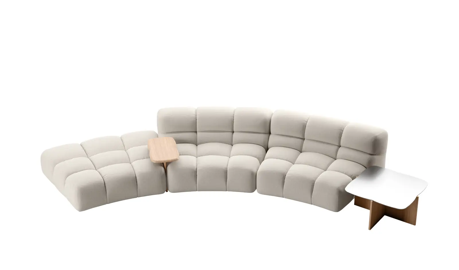 Tufty-Time 20 represents the contemporary evolution of Tufty-Time, the iconic sofa system designed by Patricia Urquiola in 2005. Twenty years after its launch, the system has been reinterpreted while maintaining the essential characteristics that have made it a great success, including modularity, enveloping comfort and compositional flexibility. The volumes, padding and seat height have been redesigned to offer even greater comfort, while the introduction of a curved module expands the system’s potential, giving rise to even more fluid and convivial configurations, ideal for both residential and contract spaces. Particular attention has been paid to the theme of circularity. Tufty-Time 20 is in fact fully disassemblable, ensuring that all the components can be given a second life at the end of the product’s life cycle.